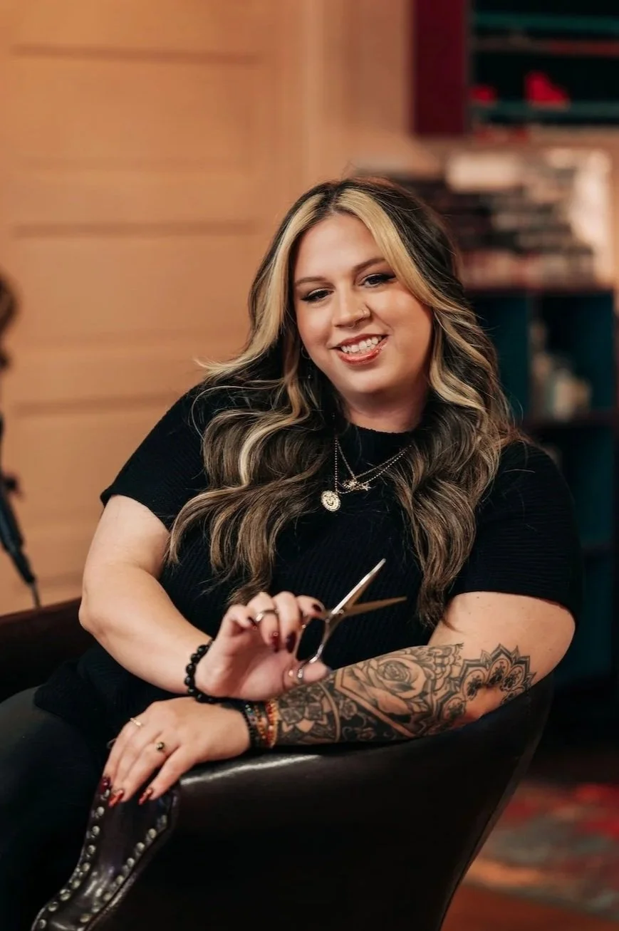 Hailey comes in with a decade of experience, a gamer-girl edge, and the kind of killer hair that makes people stop mid-scroll. She’s the perfect mix of cool-girl energy and best-friend comfort — the stylist who makes you feel instantly at home in her chair.